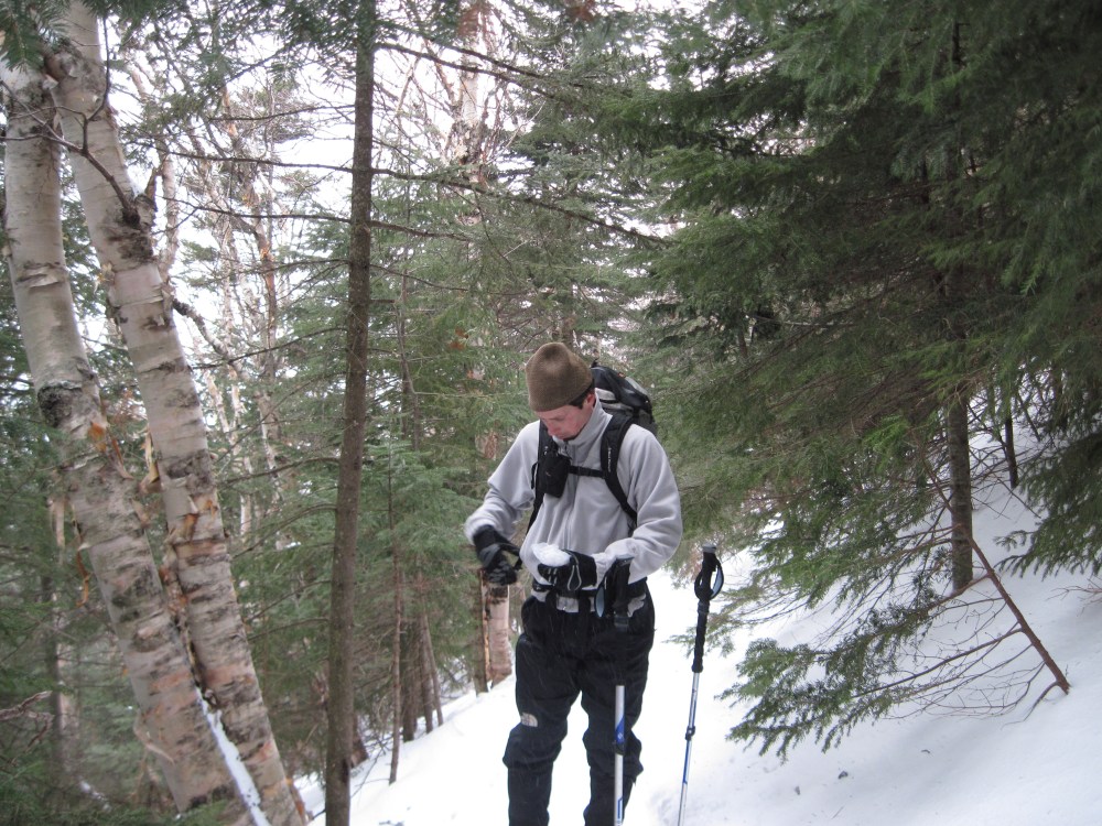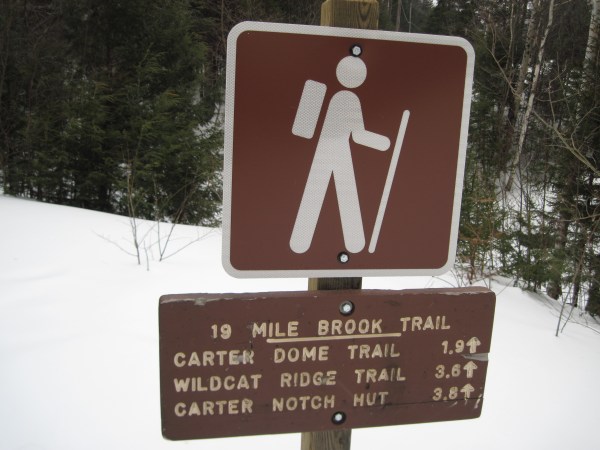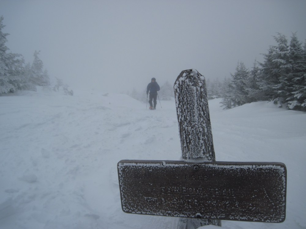 I’ve only every comes down 19 Mile Brook Trail. It was totally packed out the whole way up. We still did the whole hike with snowshoes as it was going to be much much easier to deal with traction issues. It’s a good thing we did too. As we got onto the upper part of the trails, there was quite a bit of drifting snow. I’d have to guess that the wind was gusting in the mid to upper 30MPH range at times.