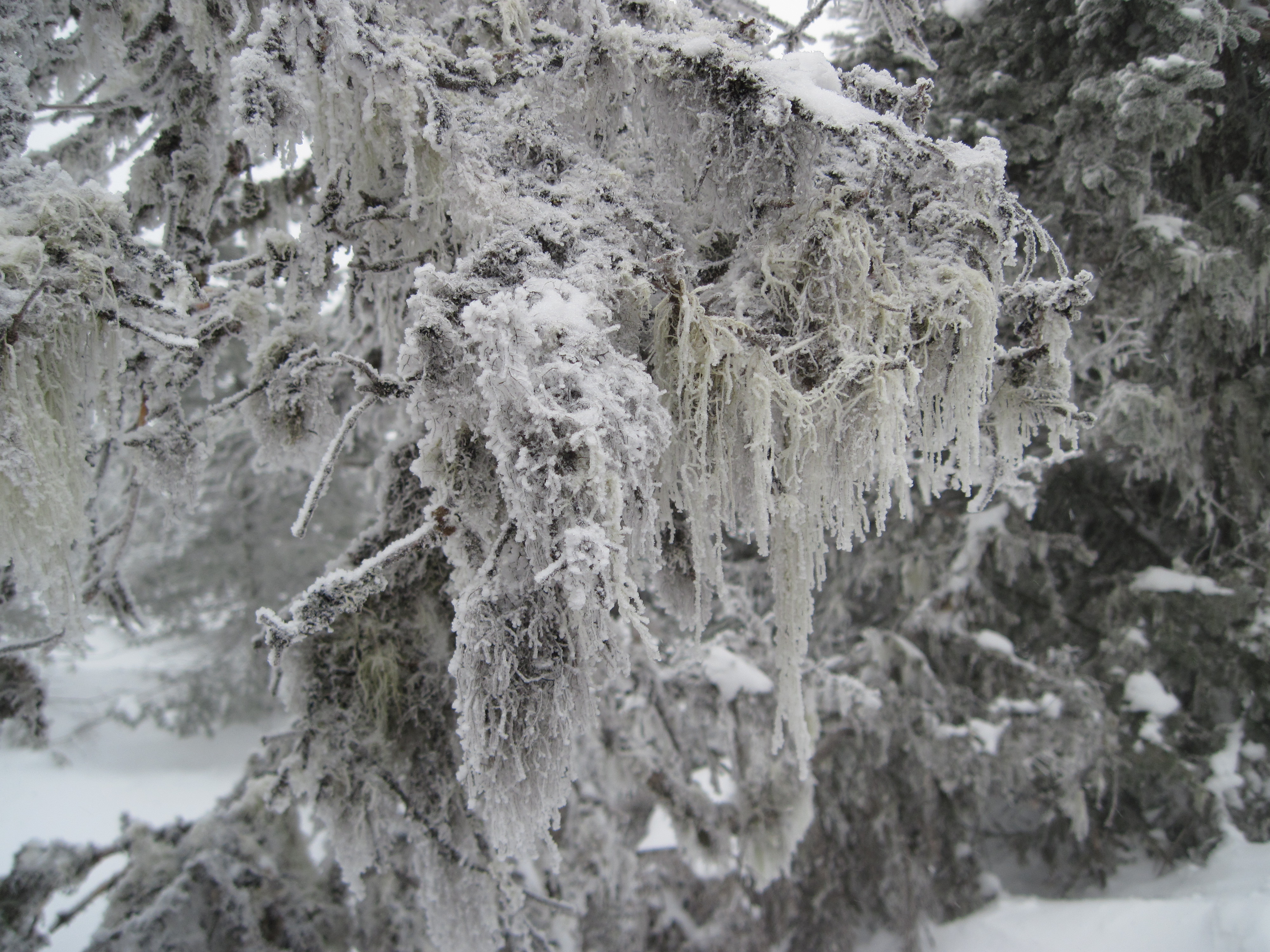 Hiked Carter Dome with my friend Erik today. It was quite cloudy and windy with very little in the way of views at the top. There was also a huge group of hikers collecting as we arrived. Our goal was to be on the trail before them so that we did not have to deal with passing them. We ran into a little rain, sleet, snow, back to sleet and back to rain during the hike. All in all though, it was a very good hike.