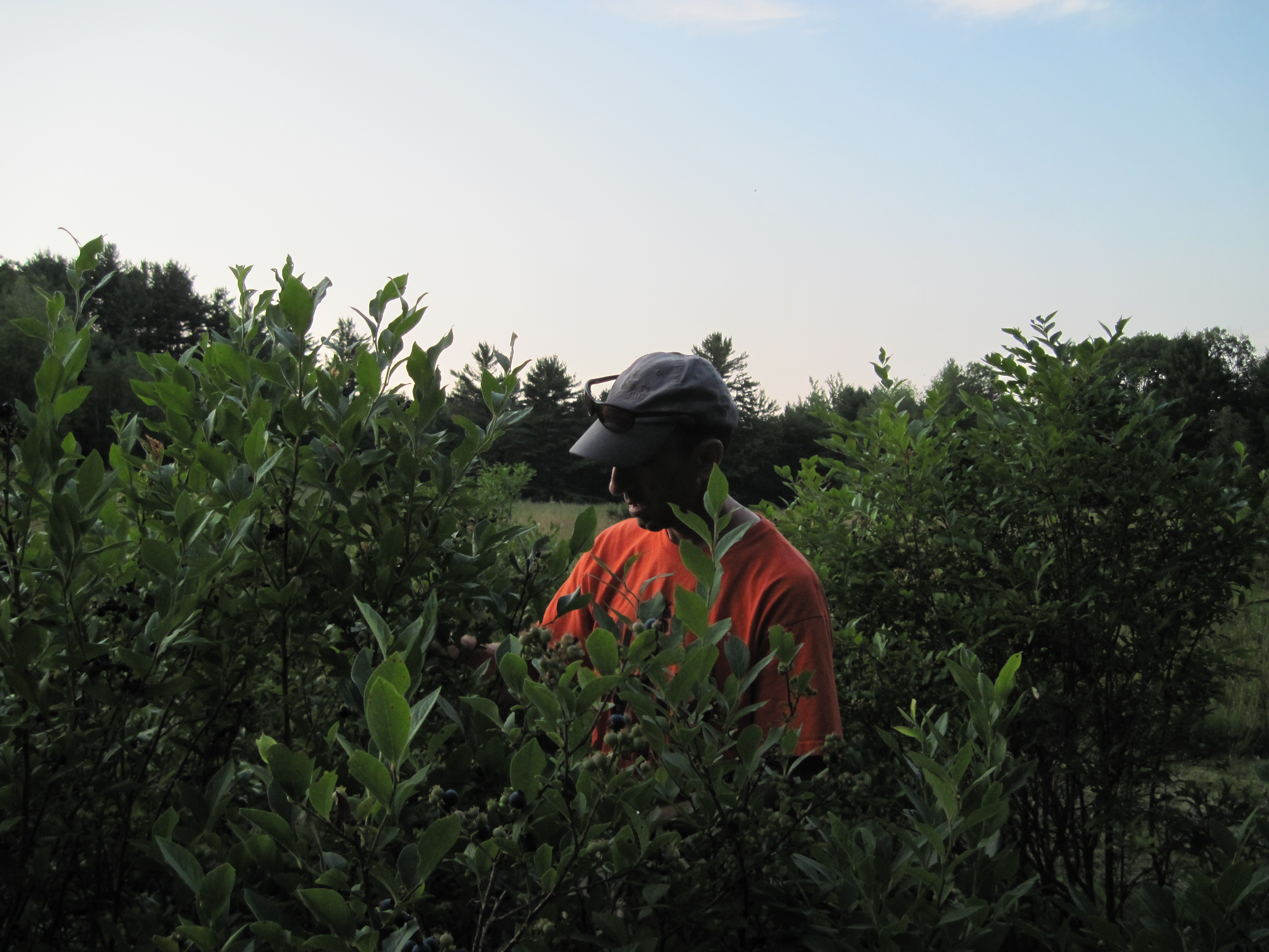 So, my older brother Steve and his wife Alison have a rather large field with some (A LOT) of “free range” blueberry bushes. He sent out the family email today signaling that it is picking time. The message came into my inbox at just past 3pm and I was out of work at 5pm and heading towards their house by 6:15.
