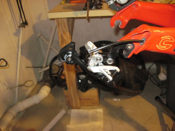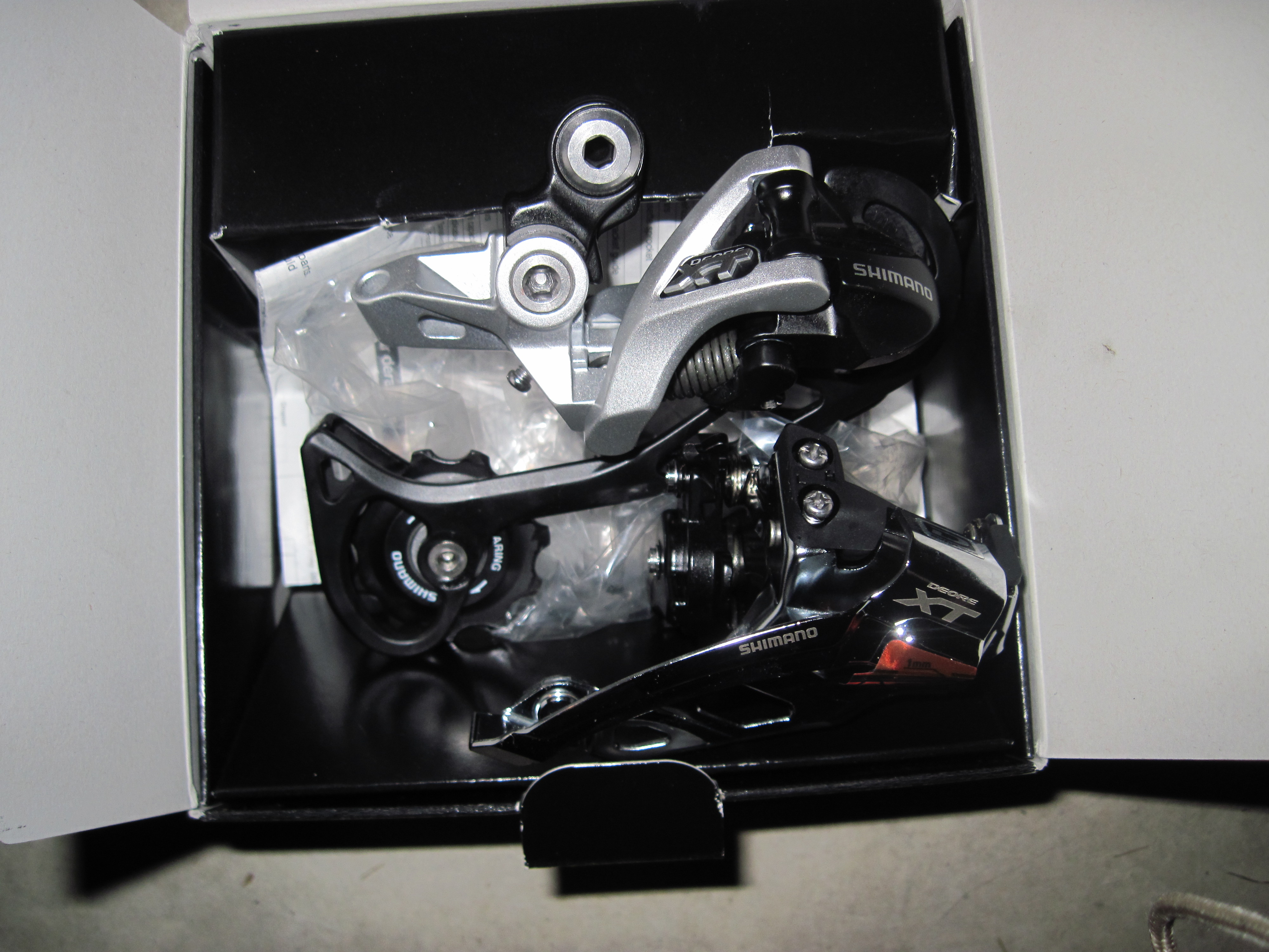 BUT….Shimano announced that the XT group would be offering a 2 x 10 version for model year 2012. I felt that this was definitely the way to go. My 2006 9 speed XT was still functional, but not as lively as it used to be. I rationalized the upgrade by deciding to sell the hardtail. I made enough off the sale of that frame/fork to by all the parts except crankset for the move to 2 x10 on the Cannondale. I purchased a right hand brake lever, a front and rear derailleur, 10 speed cassette, and shifters and still had $25 left over at the end. Not enough for a crankset, but that would come. I figured I could have it by early December, but by then the riding would probably be done for the year……..