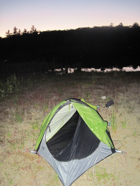 The downsides to the tent are it is not free standing, it is a tight fit and I’m only 5’4″, and it does build up some condensation on the inside. I hear that their newer tents have eliminated/at least lessened the condensation problem.