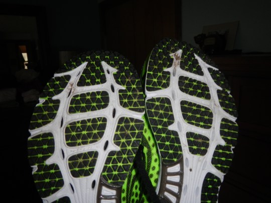 I am a tad concerned about the longevity of the sole. The lugs are very small, but so far it looks like it is holding up well. Also being strictly race shoes for my needs, I don’t expect them to wear out too fast. The plan is to use them for 5 & 10K races. I am still up in the air about using them for my next half marathon in February.