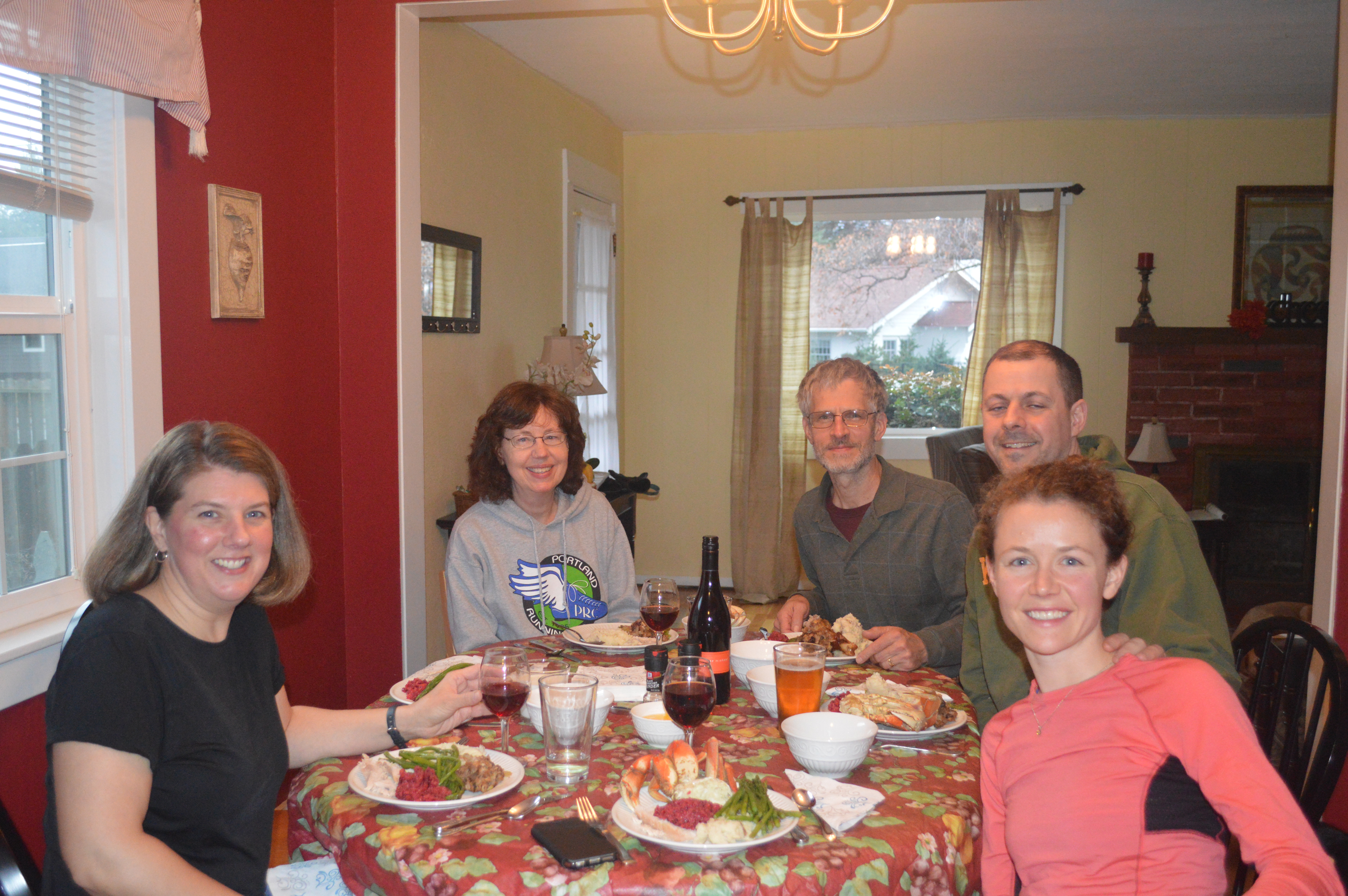 Mia and I were invited to Bend, OR for Thanksgiving this year.  Our friends Juston and Laurel had rented a house, and Laurel’s parents were flying in from West Virginia for a week too.  There was no way we could say no.  We’d received a 17lb turkey through our CSA (community supported agriculture) and it was going to be a tall order to finish something like that all by ourselves.  Plus I think Juston just wanted Mia to make her chocolate cream pie, which she of course did.