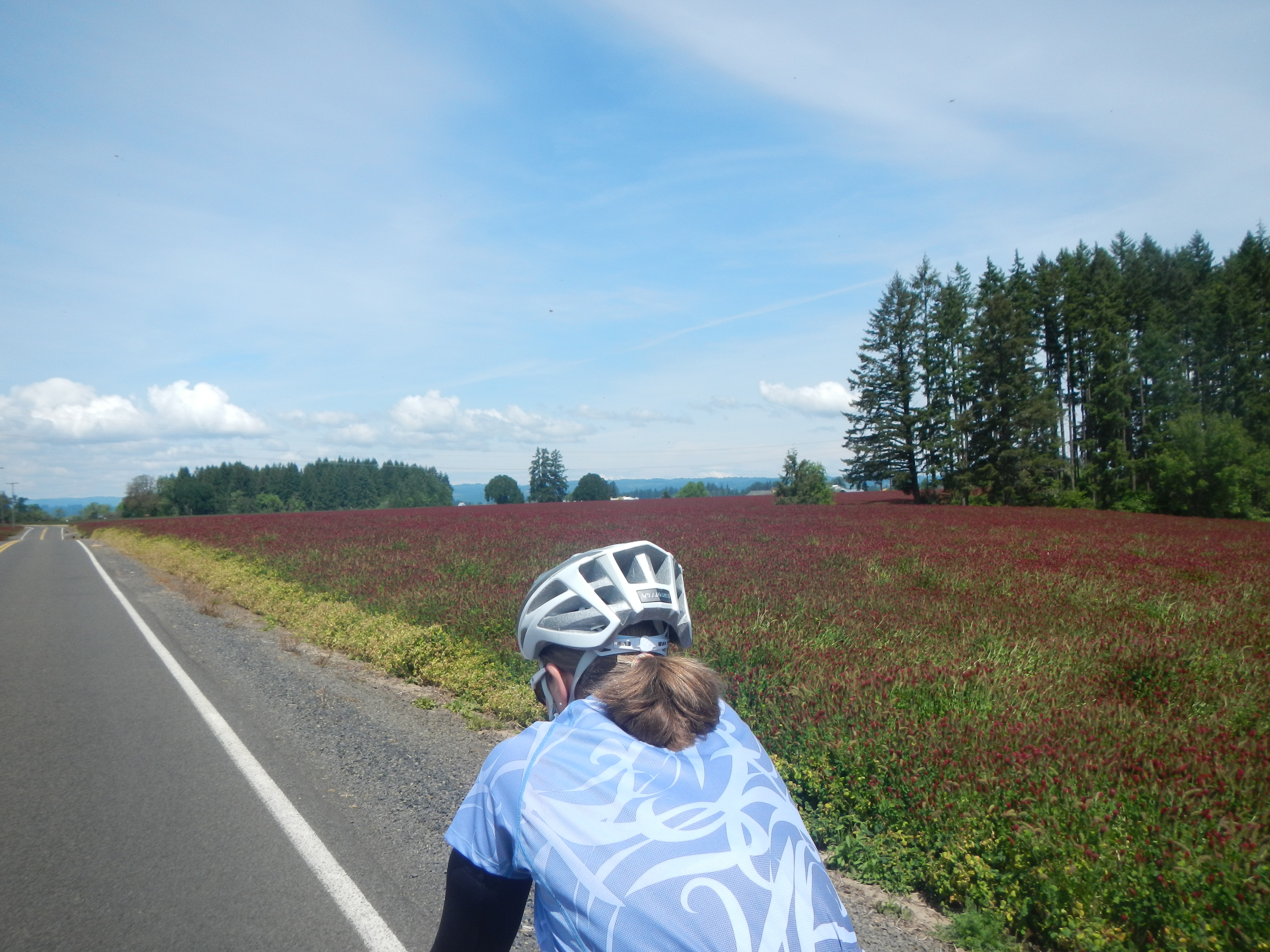 The red clover is also in full bloom. Yesterday’s ride had some awesome views of rolling fields of red clover. It looked like a crimson tidal wave. Today just past the blueberries we passed several acres of red clover. Very cool looking, though all the bees make me nervous because I don’t want them flying into my helmet vents.